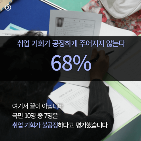 여기서 끝이 아닙니다 국민 10명 중 7명은 취업 기회가 불공정하다고 평가했습니다