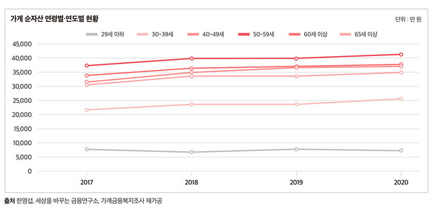 248만 원은 가구주 29세 이하 연령층이 2017년에서 2020년 말 사이 순자산이 감소된 금액이다. 같은 기간 전 연령에서 자산이 증가할 때 유일하게 29세 이하 가구주는 순자산이 감소하였다. 이는 일시적인 현상이 아니라 지속적인 현상이다. 주식이든 부동산이든 자산투자를 할 수밖에 없는 현실이 여기에 있다.
