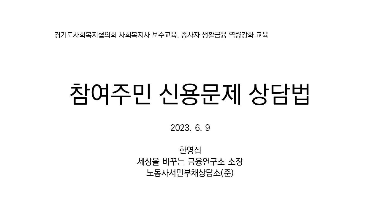 참여주민 신용문제 상담법, 한영섭 소장