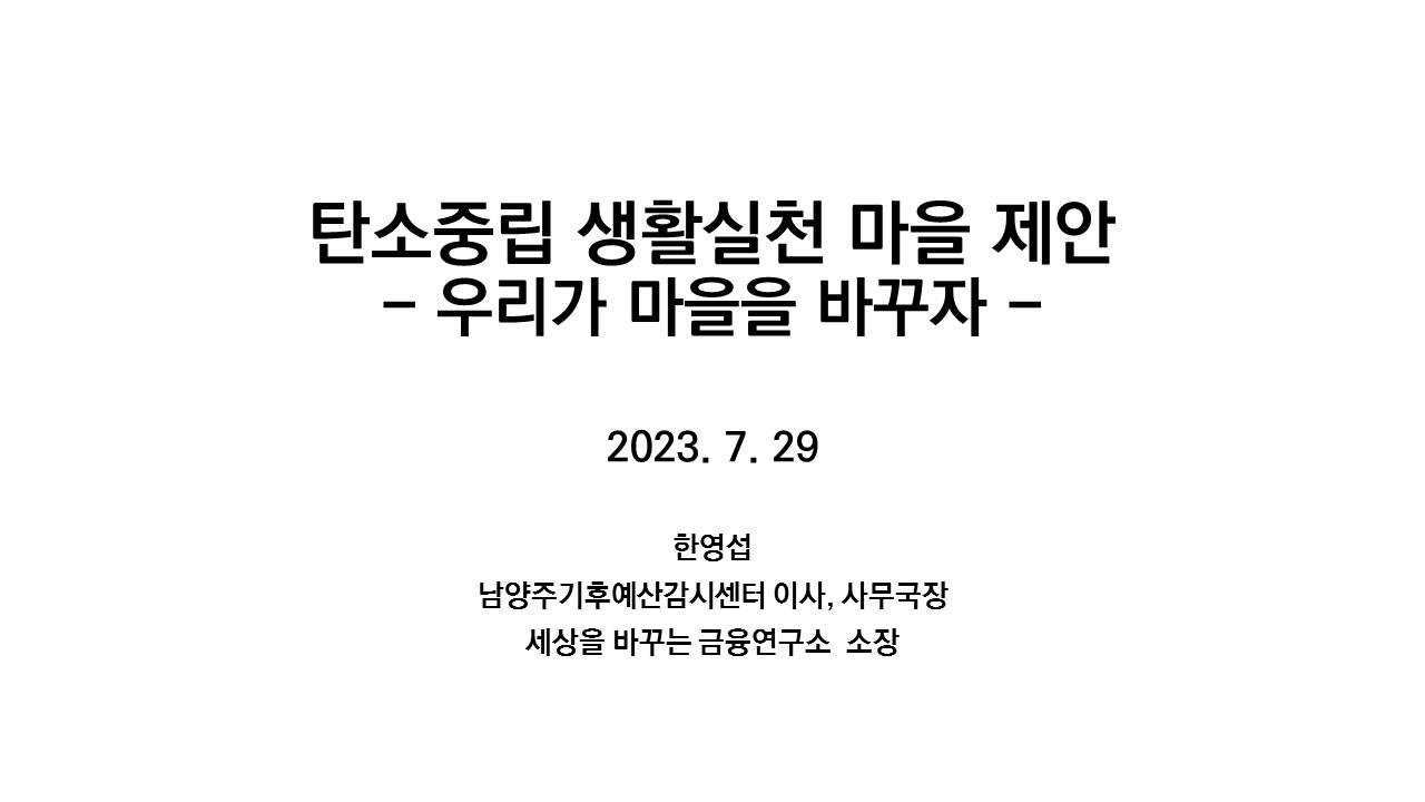기조강연, 탄소중립 생활실천 마을 제안, 한영섭 소장